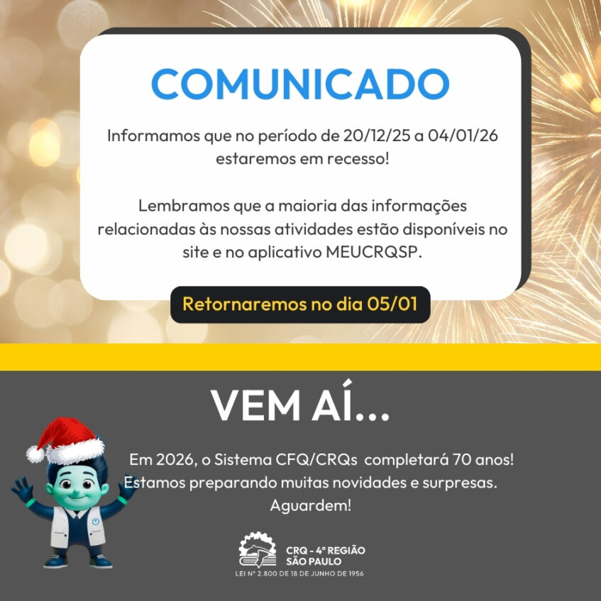 O Conselho Regional de Química da IV Região (CRQ-IV/SP) informa a todos os profissionais e empre ...