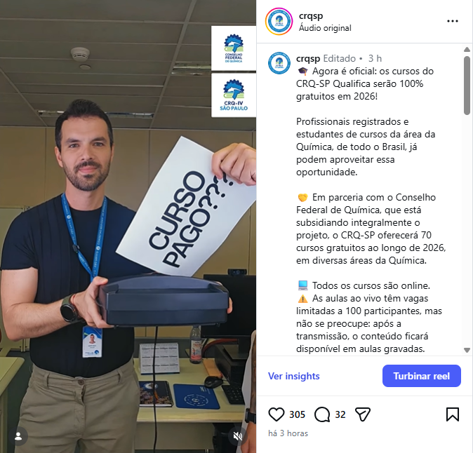Todos os anos, uma série de cursos já integravam o programa CRQ-SP Qualifica, porém eram oferecidos de forma paga. Com o lançamento da ação comemorativa, os conteúdos de 2026 passam a ser disponibilizados sem custo, reforçando o compromisso do Sistema com a valorização profissional, a educação continuada e o fortalecimento da Química.