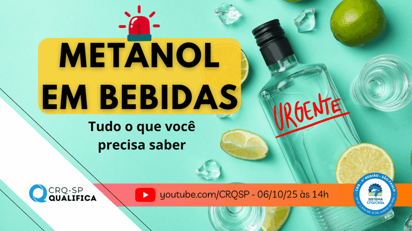 Live – Para falar sobre o tema, o CRQ-SP realizará na próxima segunda-feira, em seu canal no YouTube, a live “Metanol em bebidas – Tudo o que você precisa saber!”, organizada pela Comissão Técnica de Alimentos e Bebidas.