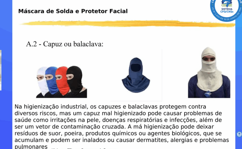 A higienização de ambientes industriais e equipamentos e o uso correto de Equipamentos de Proteção Individual – EPI’s – foram o tema de uma live no canal do CRQ-SP no YouTube nesta quinta-feira.